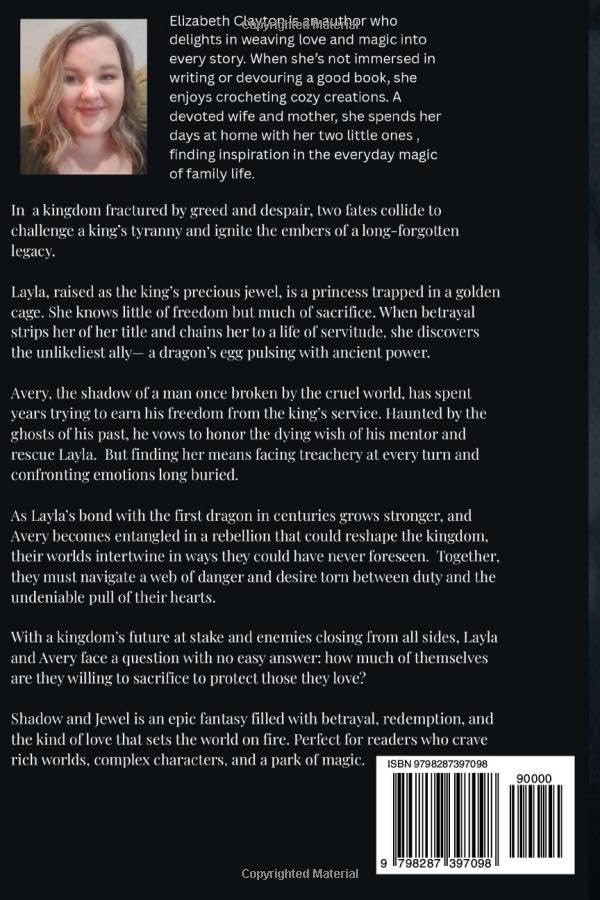 Shadow and Jewel is a sweeping tale of love, courage, and destiny, perfect for fans of richly woven fantasy worlds and unforgettable characters.